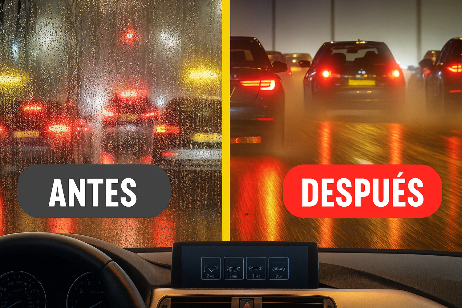 💧 +90% de repulsión al agua comparado con limpiadores comunes: crea una capa protectora que mantiene tus vidrios secos por más tiempo.